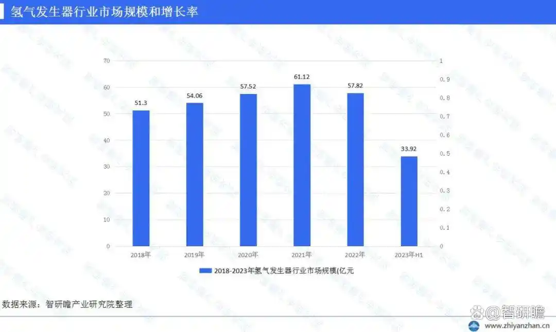 我國氫氣發生器行業市場規模和增長率