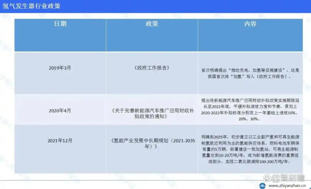 氫氣發生器行業政策