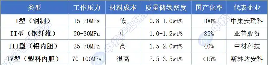 圖表:高壓儲(chǔ)氫瓶技術(shù)參數(shù)對比矩陣